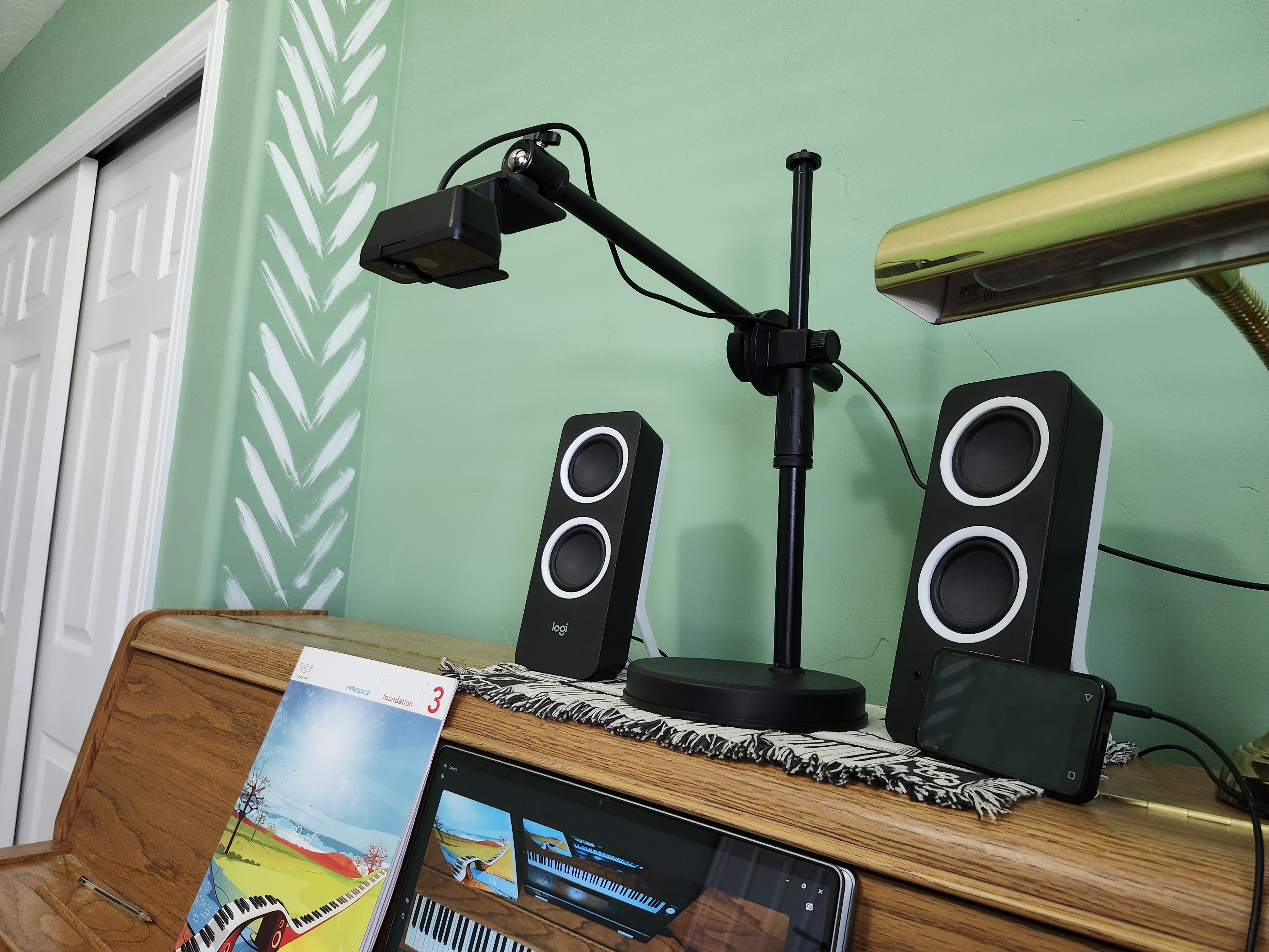 Overhead stand (or this stand) that sits on the piano for cell phone or webcam